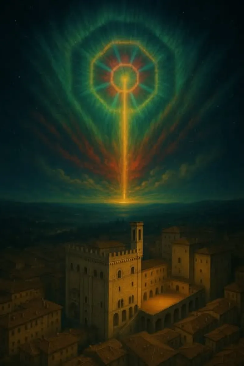 A Gubbio, secondo i documenti, la luce sembrava provenire dalla direzione di Firenze, disegnando nel cielo una traiettoria luminosa che colpì profondamente l’immaginario collettivo.