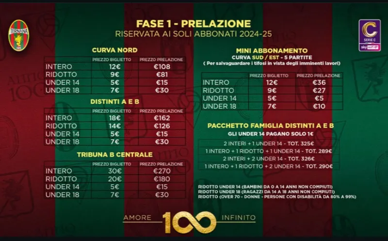 La Ternana è pronta ad accendere la passione del suo pubblico. Dopo la fase dedicata al diritto di prelazione, che si conclude oggi, il club rossoverde apre ufficialmente la vendita libera della campagna abbonamenti per la stagione 2025-2026. Un segnale forte, atteso da settimane, che arriva in un momento cruciale del campionato e in un clima di rinnovato entusiasmo dopo il recente cambio societario.