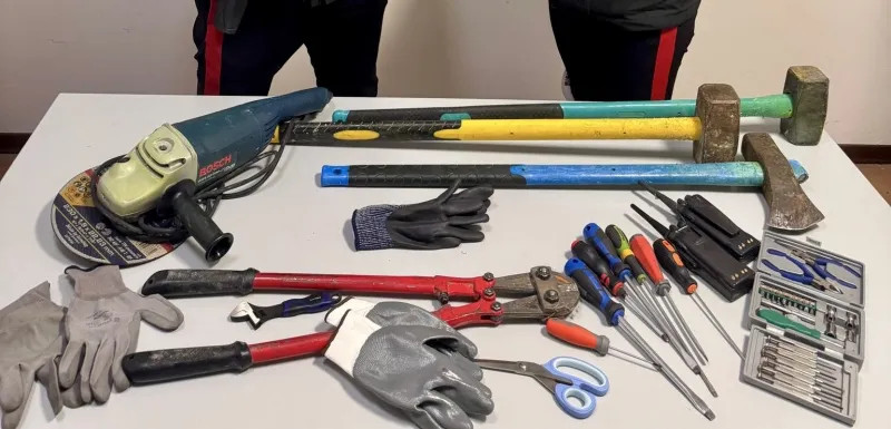 Lasciandosi alle spalle il veicolo, i tre hanno lasciato anche un vero e proprio arsenale del ladro. All’interno, i Carabinieri hanno rinvenuto targhe clonate, una pistola scacciacani funzionante, apparati ricetrasmittenti, numerosi monili e bigiotteria – quasi certamente frutto di precedenti furti – oltre a una vasta gamma di arnesi da scasso: cacciaviti, piedi di porco e frullini. Il veicolo, risultato rubato all’estero, è stato immediatamente sequestrato. Le ricerche dei fuggitivi hanno quindi coinvolto numerosi equipaggi, che hanno setacciato l’area. A pochi chilometri di distanza, il colpo di scena: il fermo di un SUV con a bordo quattro connazionali. Tra loro, i militari hanno riconosciuto uno dei tre fuggiaschi, il 32enne albanese. Durante la perquisizione, l’uomo è stato trovato in possesso di circa 3.000 euro in contanti, per i quali non ha saputo fornire una giustificazione plausibile. Anche il denaro è stato sequestrato, ritenuto probabile provento di attività illecite.
