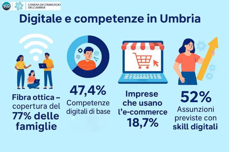 L’Umbria è connessa, ma non ancora digitale. Le reti ci sono, le infrastrutture anche. Ciò che manca, semmai, è la capacità di usarle appieno. Mentre l’Europa spinge sull’alfabetizzazione diffusa e sulla transizione digitale, la regione resta in una posizione intermedia: con buoni indicatori di accesso ma performance deboli su innovazione, competenze e capitale umano tecnologico. È il quadro che emerge dal nuovo focus della Camera di Commercio dell’Umbria, che ha scelto di rafforzare la propria azione su tecnologie 4.0, sicurezza informatica e inclusione digitale per colmare un divario che rischia di frenare imprese e cittadini.