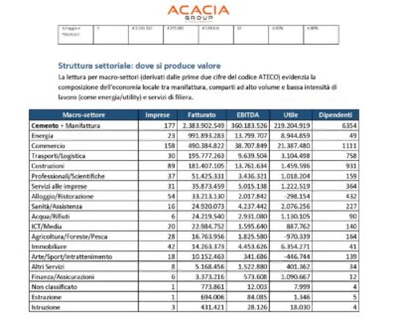 Secondo l’analisi di Francesco Pace di Acacia Group, il sistema economico del territorio presenta un baricentro ben definito.