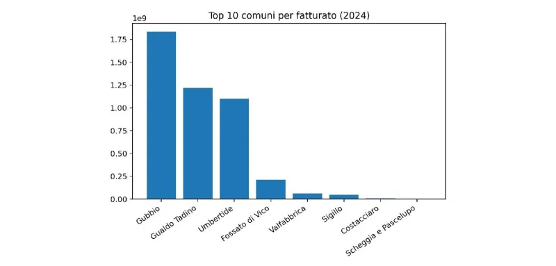 Nel confronto tra i principali centri del comprensorio emerge con chiarezza il ruolo di Gubbio, che guida la classifica per dimensione economica e qualità delle performance.