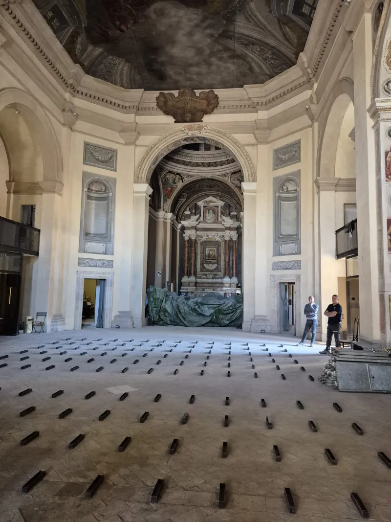 Grande attenzione è stata posta anche alle innovazioni tecniche introdotte, come il sistema di elettrosmosi per contrastare l’umidità, che attualmente garantisce murature perfettamente asciutte. Il rispetto dei vincoli imposti dalla Soprintendenza, la progettazione di una nuova struttura di sostegno per il baldacchino dell’altare e l’utilizzo di una pompa di calore di ultima generazione rappresentano esempi concreti dell’approccio integrato adottato nel restauro.