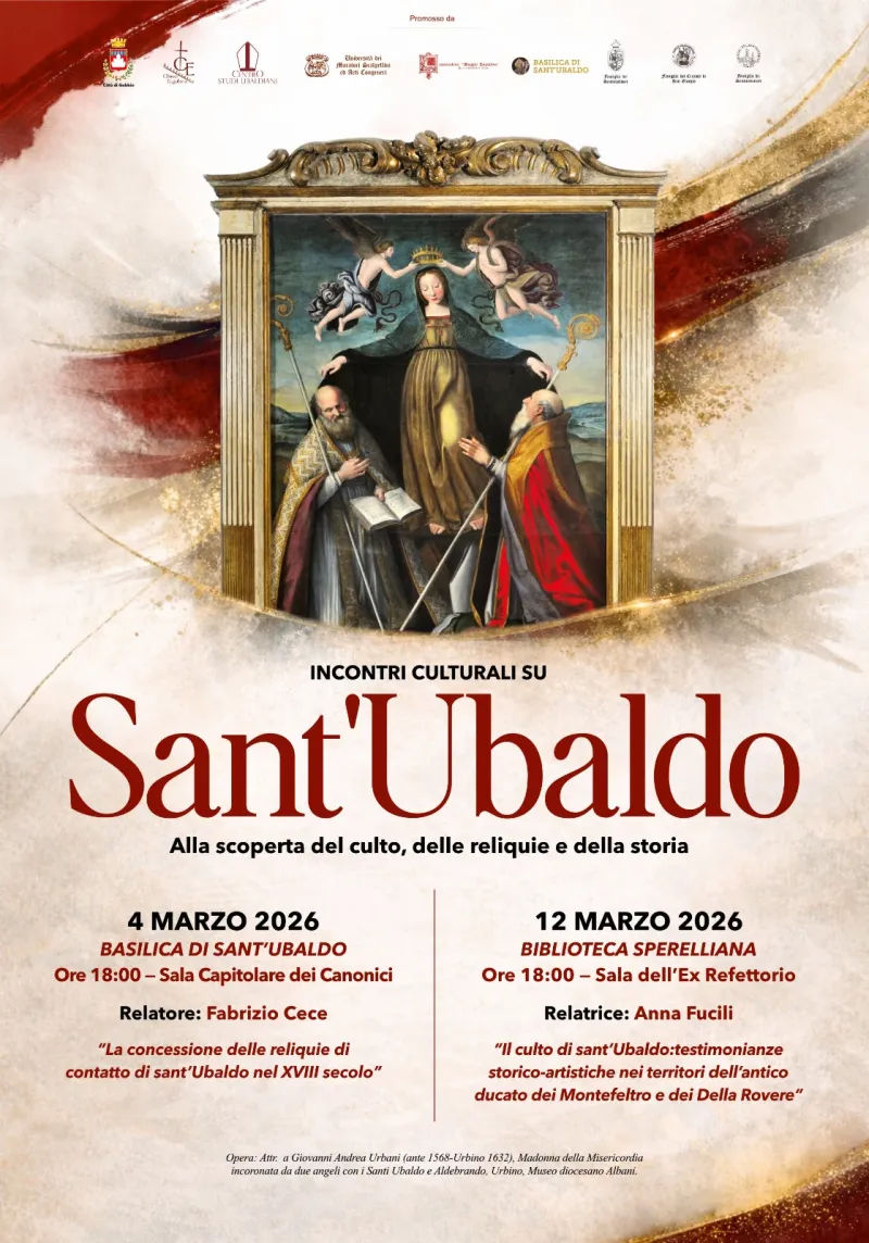 Il percorso proseguirà giovedì 12 marzo, sempre alle ore 18, alla Biblioteca Sperelliana, nella Sala dell’Ex Refettorio. Anna Fucili guiderà il pubblico in un itinerario dal titolo “Il culto di sant’Ubaldo: testimonianze storico-artistiche nei territori dell’antico ducato dei Montefeltro e dei Della Rovere”. Un’occasione per allargare lo sguardo oltre i confini cittadini e comprendere come la venerazione del patrono abbia lasciato tracce profonde nel patrimonio artistico dell’Italia centrale.