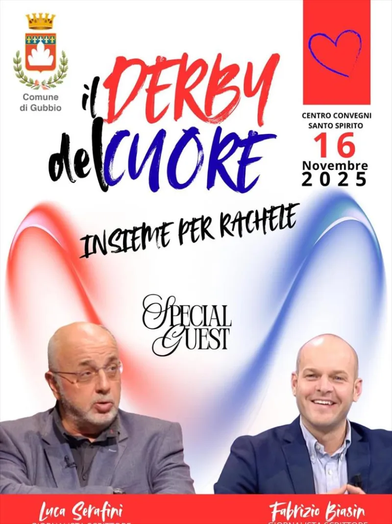 Tutti insieme, con un unico cuore rossonerazzurro, per tifare Rachele. Il Milan Club Gubbio Rossonera e l’Inter Club Gubbio Nerazzurra, con il patrocinio del Comune di Gubbio, promuovono per domenica 16 novembre l’iniziativa solidale “Il Derby del Cuore: Insieme per Rachele”. Una giornata ricca di appuntamenti, ospiti e momenti di condivisione, interamente dedicati alla solidarietà.