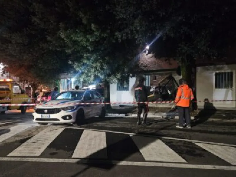 L’auto della Polizia Locale, colpita nella parte posteriore, ha riportato ammaccature e rottura del paraurti, mentre il prefabbricato del cantiere è stato gravemente danneggiato e dovrà essere ricostruito.