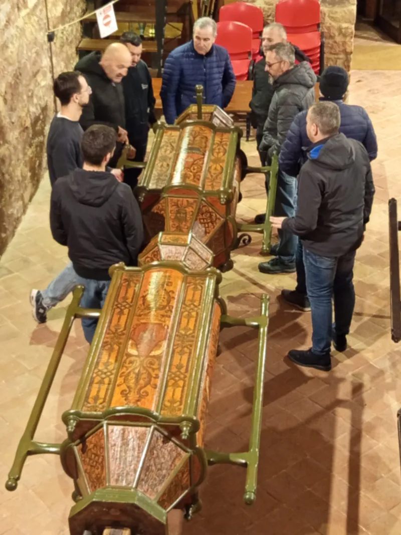 Con il supporto dell’Università dei Muratori e dei due Capitani, e sotto il coordinamento del Comune di Gubbio, i Ceri sono stati prelevati dal luogo più alto e più sacro della città per essere condotti nello spazio destinato alla manutenzione ordinaria. Un’operazione compiuta con rispetto, attenzione e consapevolezza, perché «toccare i Ceri significa toccare la storia viva di Gubbio».