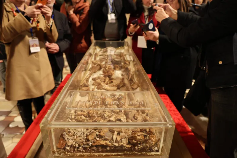 Assisi, 4 ottobre 2025. Sulla piazza della Chiesa Inferiore della Basilica c'è una folla riunita per le celebrazioni in onore di San Francesco nella città che gli ha dato i natali e che ne custodisce le spoglie. Poco dopo le 11.30 dalla Loggia del Sacro Convento, alla presenza tra gli altri della premier Giorgia Meloni e del ministro della Cultura, Alessandro Giuli, è arrivato un annuncio che è risuonato come uno spartiacque: l'ostensione al pubblico, in occasione dell'Ottavo Centenario dalla morte del Poverello, delle sue spoglie mortali, per la prima volta in otto secoli e per un periodo prolungato, un mese intero dal 22 febbraio al 22 marzo 2026. Un evento solenne dalla portata storica e di immenso valore spirituale per i fedeli che da quando si è aperta la venerazione, ogni giorno e da ogni parte del mondo, arrivano per compiere il pellegrinaggio davanti a quella teca che conserva l'impronta terrena del Santo.