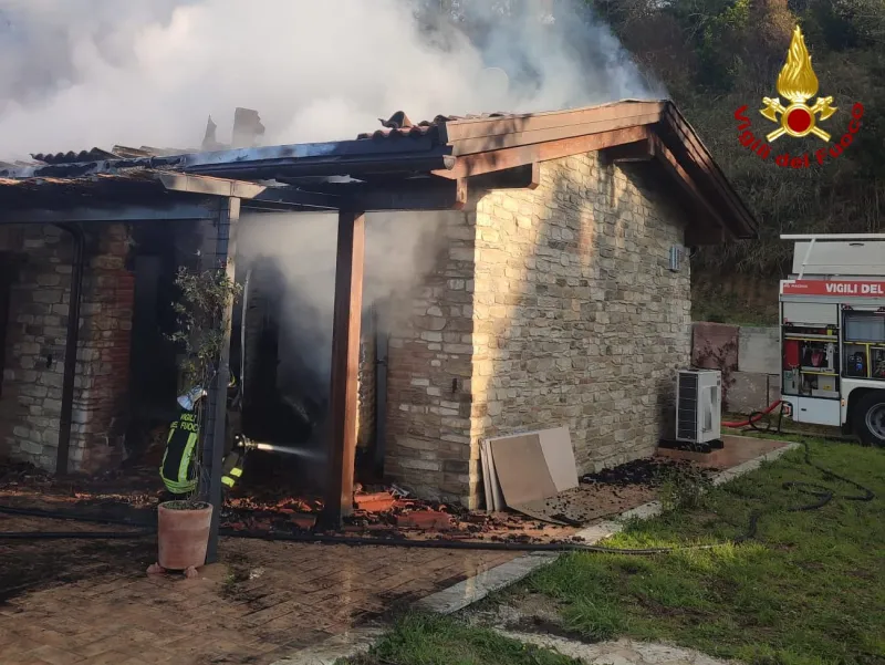 La copertura del casolare è interamente in legno e le fiamme partite dalla canna fumaria surriscaldata potrebbero essersi rapidamente propagate al tetto, dove sono anche presenti dei pannelli solari, che sta ancora bruciando. Le operazioni di spegnimento e bonifica stanno proseguendo. La casa, un immobile ben tenuto con mura in pietra, è ora stata sottoposta a sequestro per consentire l'espletamento delle indagini.