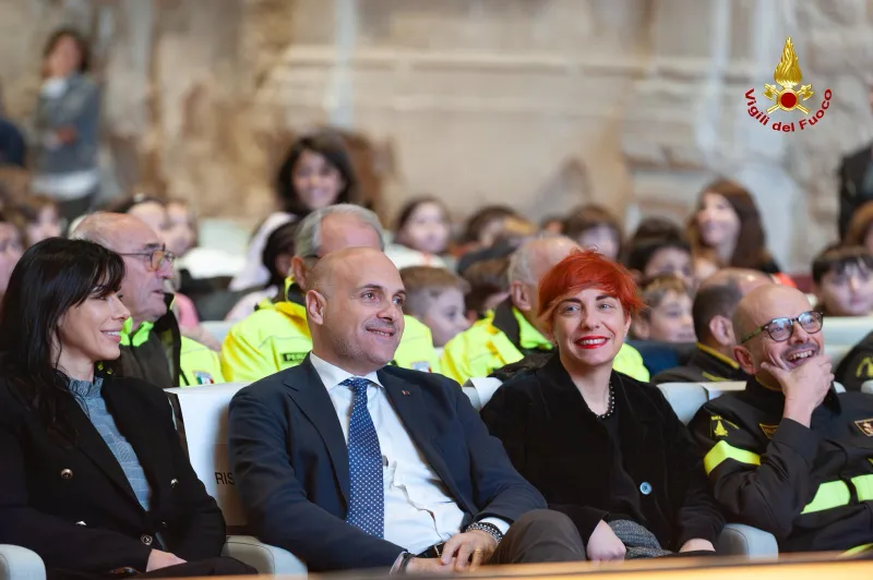 Momento clou, l’incontro diretto con gli uomini e le donne del Comando Vigili del Fuoco di Perugia. Una sessione di domande e risposte senza filtri, dove la curiosità dei più piccoli ha incontrato le esperienze di chi il soccorso lo vive ogni giorno. All’esterno dell’Auditorium, poi, ad attenderli c’era una vera e propria esposizione di mezzi e tecnologie: dagli autopompe ai dispositivi per le emergenze NBCR (Nucleare, Batteriologico, Chimico, Radiologico) e USAR (Urban Search and Rescue), fino alle unità cinofile e ai SAPR, i droni che ormai affiancano le operazioni di soccorso. Un assaggio concreto dell’eccellenza e della versatilità del Corpo.