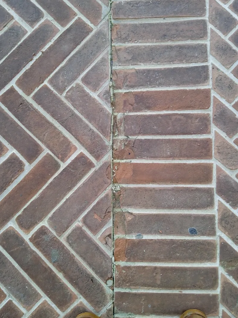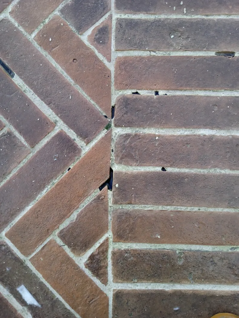 In diversi punti del lastricato si notano buchi e cavità che non dovrebbero esistere in una pavimentazione nuova. Non si tratta solo di crepe superficiali, ma di veri punti di ingresso per l’acqua piovana.
