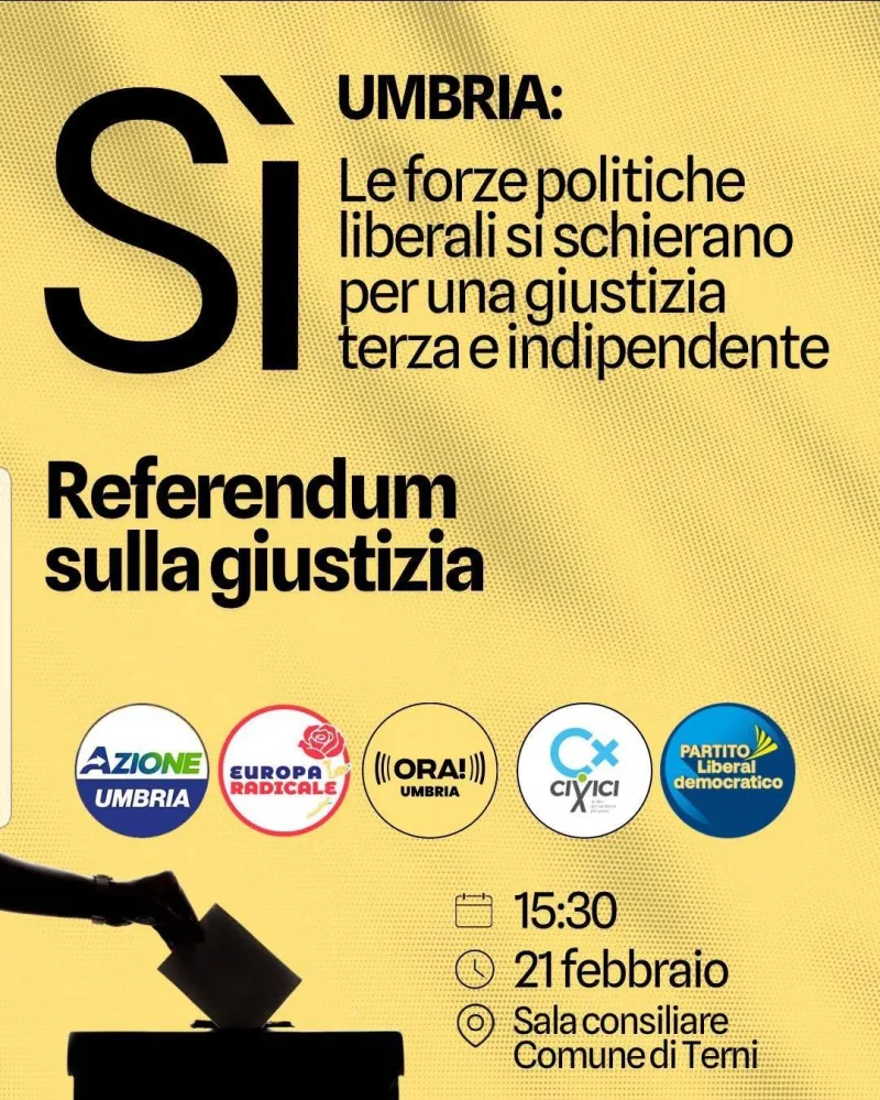 Se ne parla da mesi, ma finora il dibattito pubblico è stato per lo più incentrato sulla battaglia di opinioni pro o contro il governo nazionale. Terni prova a riportare il referendum sulla giustizia dentro l’alveo del diritto costituzionale. Lo fa con una giornata di confronto nella sala consiliare di Palazzo Spada, dove il coordinamento delle forze liberali umbre - Azione, Civici X, Europa Radicale, Ora! Umbria e Partito Liberaldemocratico - ha messo in fila le ragioni del Sì. Non solo separazione delle carriere, ma anche e soprattutto il nodo delle correnti della magistratura, accusate di avere trasformato il Consiglio superiore in un terminale di lottizzazione.