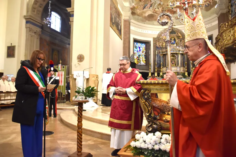 Il momento più alto della liturgia, prima della processione cittadina, ha visto la presidente del Consiglio Comunale, Sara Francescangeli, salire all'altare per accendere la lampada votiva e pronunciare l'atto di affidamento della città al Santo Patrono. Un gesto che non è parso una mera formalità, ma il sigillo di un patto rinnovato tra la comunità civile e la sua storia più profonda. Un segno, è stato sottolineato, della “disponibilità degli amministratori pubblici ad essere attenti ai bisogni della comunità e a promuovere con onestà e saggezza ciò che giova al bene comune”. Le parrocchie della città di Terni hanno offerto il cero, idealmente unendo in un unico filo conduttore tutte le anime della diocesi. La parte musicale, suggestiva e solenne, è stata curata dal Coro Diocesano diretto da don Sergio Rossini, con la partecipazione di un gruppo strumentale del Liceo musicale 'F.Angeloni' e degli studenti dell'Itt di Terni che hanno composto ed eseguito un canto originale dedicato a San Valentino.