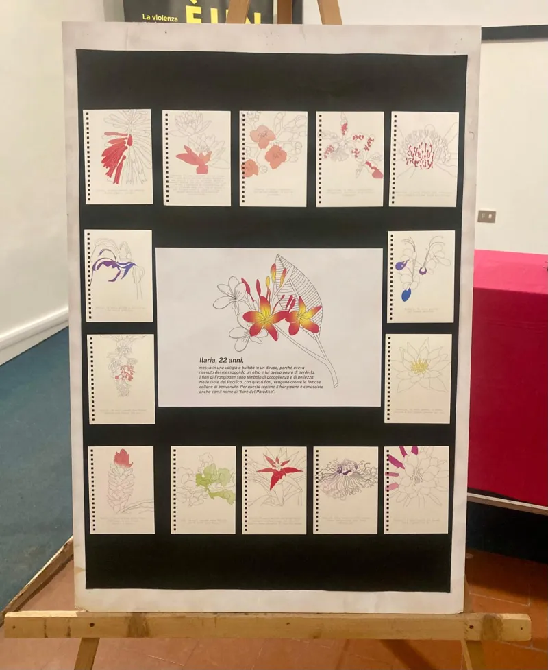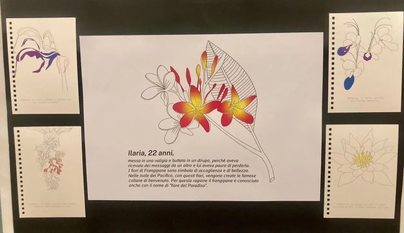 Nel corso dell’iniziativa è stata presentata l’opera dell’artista Francesca Ascione nell'ambito del suo 'Fiori recisi', di cui avevamo già parlato lo scorso 25 novembre. Un progetto dove Ascione ha dedicato un fiore alle donne "recise" dalla violenza maschile. Ciascuna immagine è accompagnata dalle parole, poche, tratte dalla cronaca: il nome e l’età della donna e la dichiarazione dell’assassino riguardo al movente del femminicidio. Un'opera che attraverso il linguaggio visivo riesce a richiamare cura e delicatezza e induce a soffermarsi tra memoria, consapevolezza e commozione.