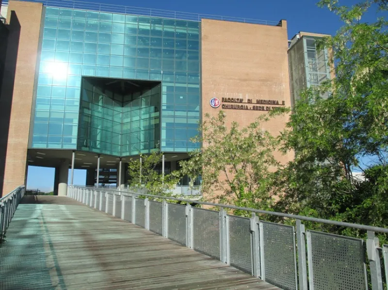 La struttura progettata dall’architetto Mario Vagata avrebbe dovuto rappresentare il punto di svolta per la formazione medica a Terni. Realizzata nell’anno accademico 2004/2005, l’opera si sviluppa in una torre semiellittica di cinque piani collegata da un ponte sospeso al parcheggio dell’ospedale “Santa Maria” e da una scalinata monumentale al piazzale antistante. Il complesso comprende l’aulario, i laboratori di ricerca con uno stabulario all’avanguardia, uffici, biblioteca e sale studio. Tutto funzionante, tranne che per l’ultimo piano. “All’ultimo piano era prevista l’Aula Magna, pensata come luogo di incontro e di rappresentanza per l’intero corso di laurea”, spiega Talamonti. “È stata tuttavia lasciata allo stato grezzo, in attesa dei finanziamenti necessari per il completamento e l’arredamento. A distanza di oltre vent’anni la situazione, purtroppo, non è cambiata”.