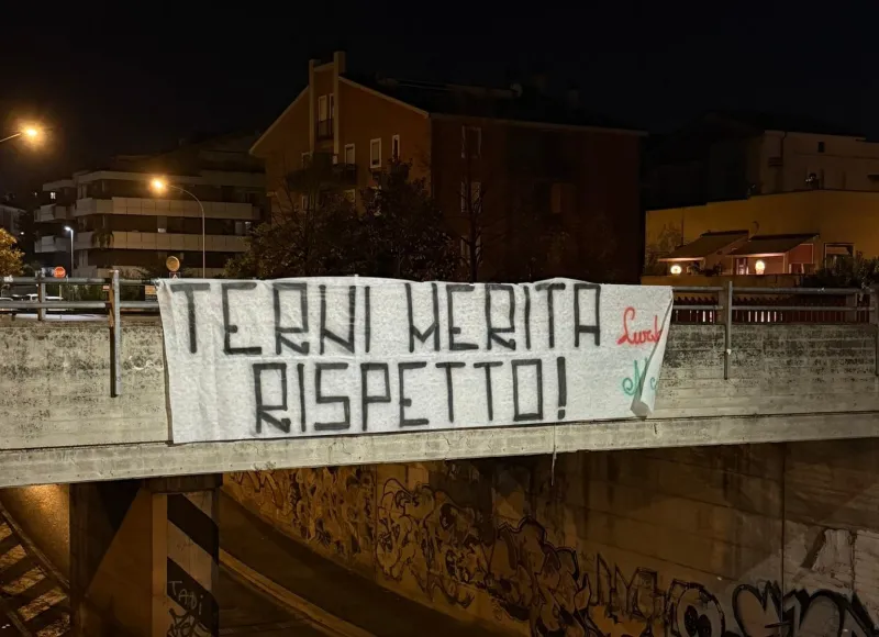 Nella notte, intanto, la protesta si è materializzata in forma visibile: sui muri, nei sottopassi e lungo alcune arterie principali di Terni sono comparsi i primi striscioni rivolti alla presidente della Regione Stefania Proietti. In uno, particolarmente esplicito, campeggia la frase: “Proietti non giocare con il futuro della città, altrimenti ognuno si assumerà le proprie responsabilità”. Un riferimento diretto al ricorso regionale che ha di fatto riaperto una ferita rimasta aperta dopo le estenuanti vicende dell’estate. Ma il messaggio più forte è quello che viene mandato ai centri decisionali istituzionali perugini: "Terni ha una sua dignità, mai schiavi di un'altra città". Un segnale della crescita di risentimento locale che travalica il solo aspetto calcistico, ma che entra nella carne viva del rapporto tra Terni e le istituzioni regionali. Da sempre vissuto, al di là del colore politico di chi le governa pro tempore, come profondamente squilibrate e viziate da una ricerca del consenso sul bacino della provincia di Perugia.