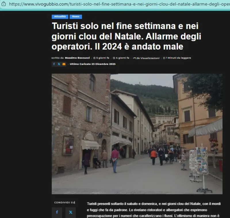 La narrazione cambia radicalmente se si guarda al punto di vista degli operatori locali e ai dati riportati da “Vivo Gubbio”. Qui, il quadro appare decisamente meno rassicurante.