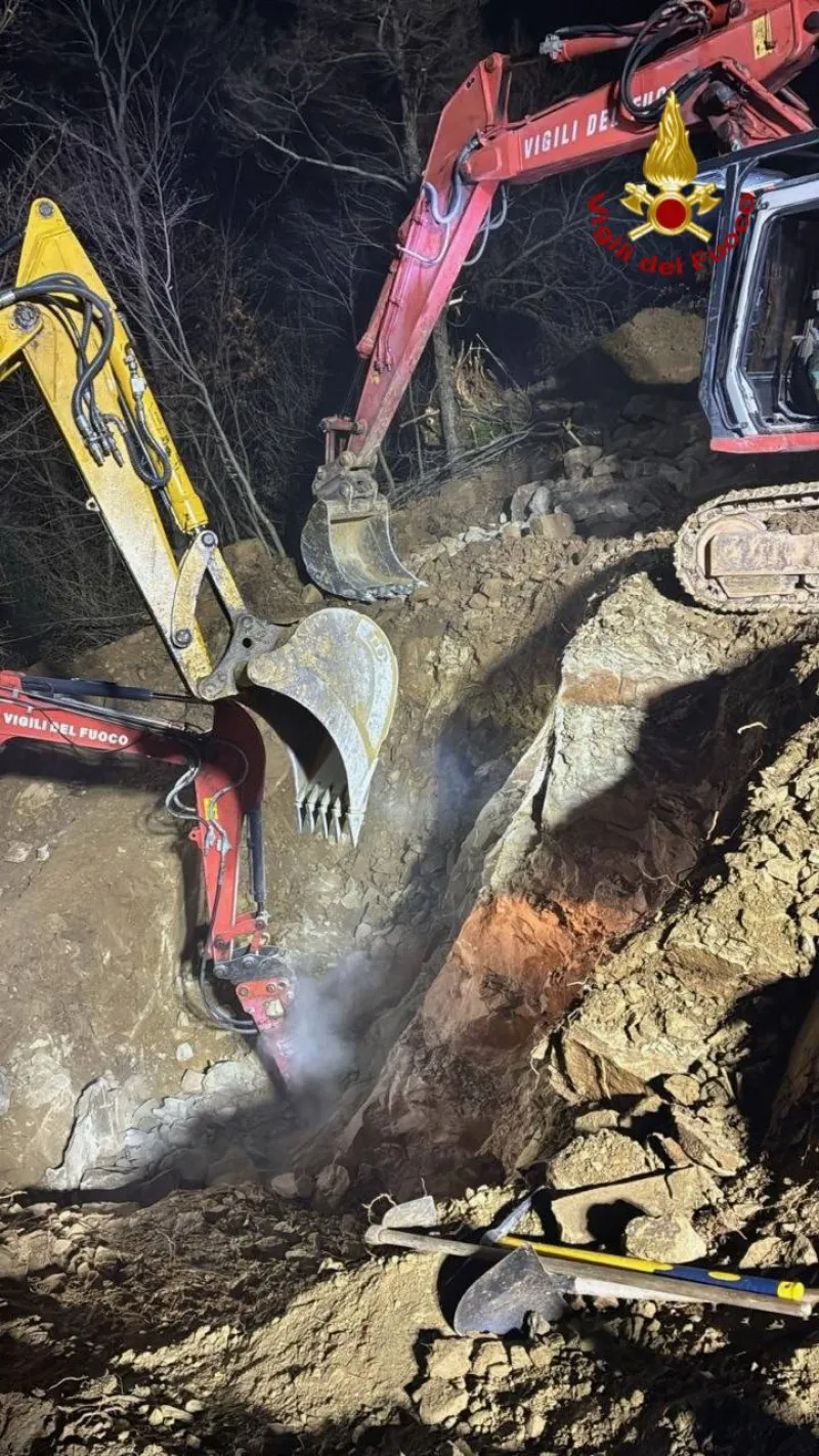 Per raggiungere il punto esatto in cui il cane era incastrato, sono stati utilizzati escavatori, con un lavoro progressivo ed estremamente delicato di rimozione del terreno. Il segugio si era andato ad infilare talmente in profondità che ogni minima azione di spostamento avrebbe potuto seppellirlo sotto quintali di terra.