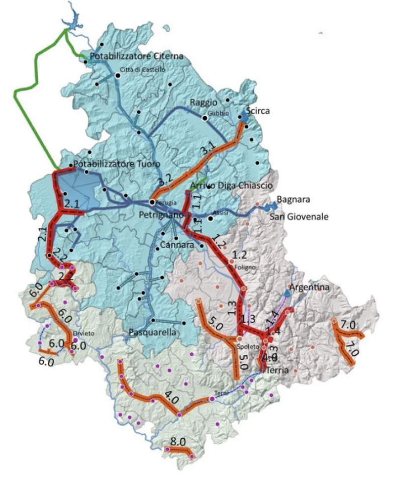 Il fronte orientale della sicurezza idrica regionale si concentra sull’area di Foligno e della Valle Umbra. Qui, 10 milioni di euro sono destinati al cruciale riordino del sistema idrico presso il potabilizzatore del Chiascio. A questi si sommano oltre 26 milioni per l’ottimizzazione delle infrastrutture a servizio dei sistemi di captazione e riserva di Foligno, strutture complementari al progetto “Umbria Resiliente”. Infine, un investimento ingente da 30,8 milioni di euro mira alla rifunzionalizzazione e al potenziamento degli assi portanti dell’acquedotto Valle Umbra, intervenendo su nodi critici a Giano dell’Umbria, Bevagna e Montefalco. Sono interventi strutturali che vanno a sanare punti deboli noti, la cui inefficienza metterebbe a rischio vaste aree territoriali.