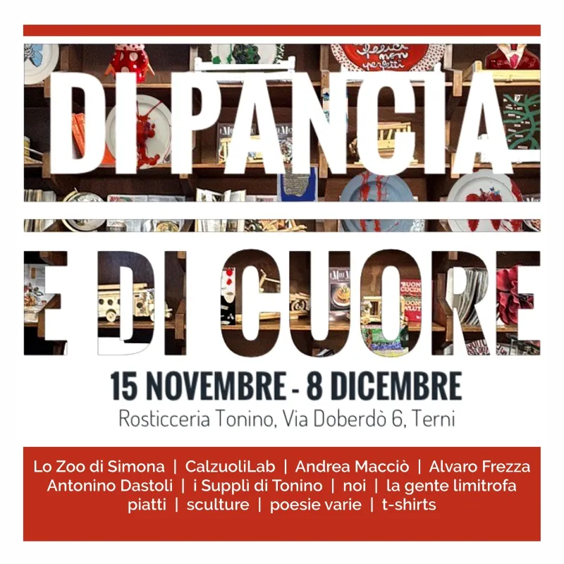 A breve, il 15 novrembre, 'Lo Zoo di Simona' insieme ad altri artisti, sarà protagonista dell'esposizione 'Di pancia e di cuore' promossa all'interno di una storica rosticceria ternana, presente ormai dal 1970. "Un progetto che mescola materia, parola, cibo e relazione, trasformando un luogo quotidiano e storico, come la Rosticceria Tonino in un laboratorio di emozioni e linguaggi condivisi" si legge nella presentazione.